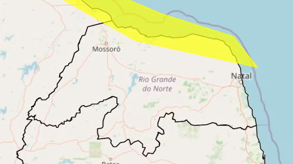 Novo alerta de perigo para chuvas intensas atinge quase todo o RN