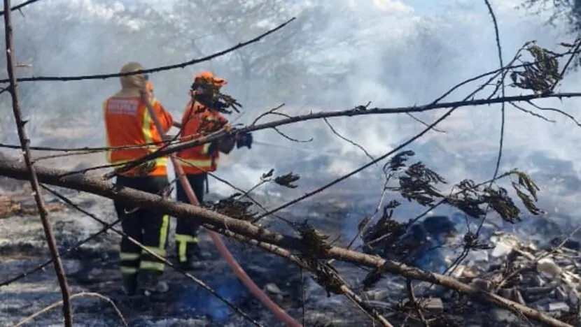 Bombeiros controlam incêndio em lixão na Praia de Pitangui após sete horas de combate